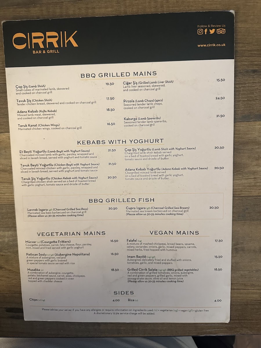 Overall, Cirrik 19 Numara Bos is an excellent choice for anyone seeking a genuine Turkish dining experience in London. The combination of exceptional food, great ambiance, and attentive service makes it a standout among other Turkish restaurants in the area. Whether you're a fan of grilled meats or traditional meze, this restaurant has something for everyone.