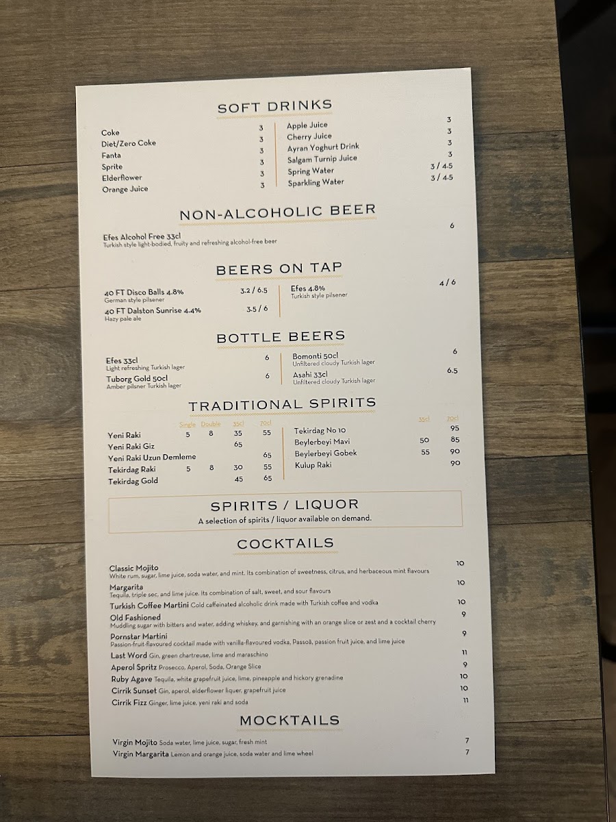 The atmosphere of the restaurant mirrors the menu’s authenticity, with a warm and welcoming setting that transports diners straight to Turkey. The service is friendly and attentive, ensuring that guests feel well taken care of throughout their meal.